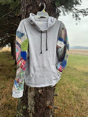 This cozy statement coat was made from a preloved quilt, giving it that perfectly worn, one-of-a-kind charm. Every patch and stitch has history!