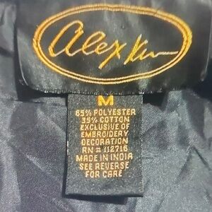 Vibrant patchwork jacket featuring red, yellow, and black colors. Perfect for adding a bold statement to your wardrobe.