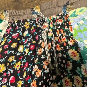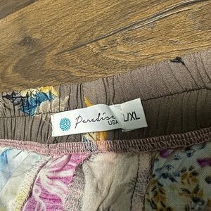 Vibrant and fun, these colorful patchwork pants are perfect for beach days or any day. Featuring a mix of colors, they add a splash of creativity to any outfit.