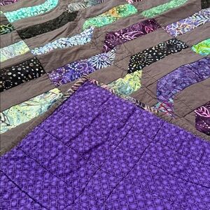 Vibrant patchwork quilt with a mix of colors. Perfect for adding a splash of color to any room.
