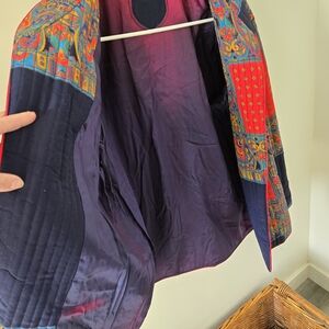 vibtage Vibrant patchwork quilted jacket with red and blue patterns. Perfect for a bold fashion statement.no tags but fits like a M/L
