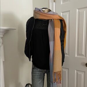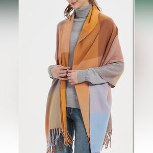 Add a pop of color to your outfit with this vibrant patchwork scarf. Perfect for any season, this accessory features a blend of warm and cool tones.