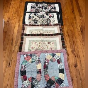 Set of colorful patchwork shams with floral and geometric patterns. Perfect for adding a cozy touch to any room.