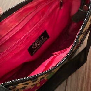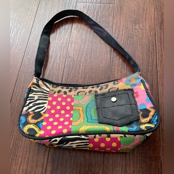 Colorful and stylish, this patchwork bag is perfect for adding a pop of color to an outfit. unique cotton design of mixed patterns is a must-have accessory for the fashion-forward! played with by a tween, so the inside is not immaculate — as reflected in the price.