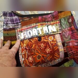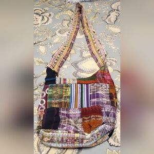 Vibrant and stylish, this colorful patchwork shoulder bag is perfect for adding a pop of color to any outfit. Featuring a unique design with a blend of colors, it's both functional and fashionable. Hippie vibes!