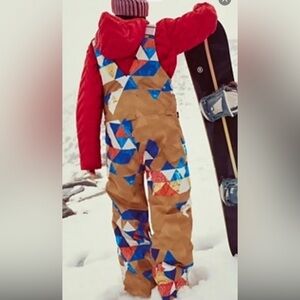 Vibrant patchwork snow overalls with a mix of colors. Perfect for winter adventures. New with tags.