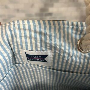 Inside is blue stripe with a pocket.