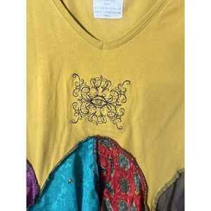 Add a touch of artistry to your wardrobe with this colorful patchwork tunic top. Featuring a blend of vibrant hues, it's perfect for any occasion.