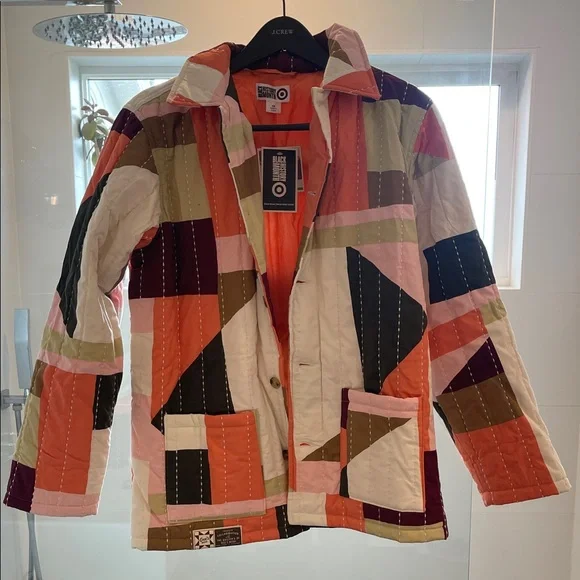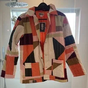Make a statement with this colorful patchwork utility jacket. Ideal for adding flair to any ensemble.