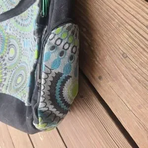 This bag is so full of style and color. It's bright design is super eye catching, which is how I ended up buying it in the first place. That and it said it supports the women in Nepal. I have a ton of bags though and have just never used it. I lost one of the zippers in my closet apparently, so I added the green matching paperclip seen in the pic, which works fine, but you could replace it with a normal zipper pull.