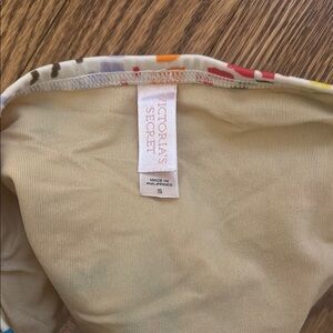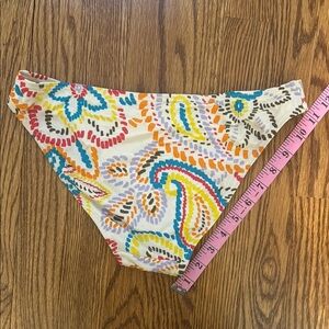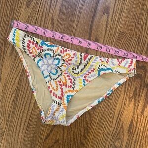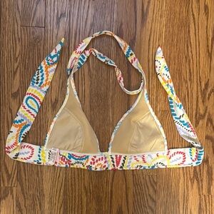 Vibrant bikini set with a colorful pattern. Great condition. Features a halter top, tie-back and matching bottoms. Missing inserts for top but can be worn without. Top is XS and bottoms are S.
