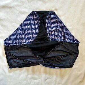 Vibrant bikini set with a colorful patterned top and patterned bottoms. Colors are blue, pink, lavender, yellow and white. Perfect for a stylish beach day. Cups are padded and wireless.