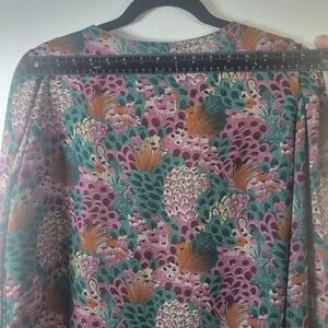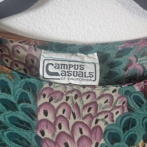 Vintage Campus Casuals of California peacock floral blouse with relaxed sleeves.