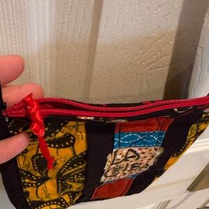 Vibrant crossbody bag with a unique pattern. Features red, blue, yellow, and black colors. La ceiba Honduras