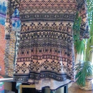 Tribal/geometric pattern on ombre colored 3/4 length sleeves dress, slightly longer in back.