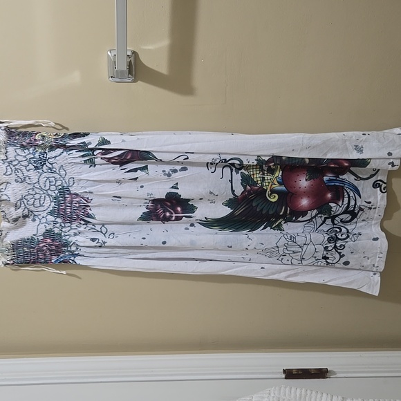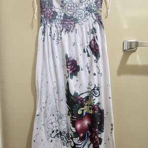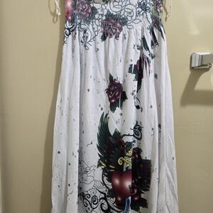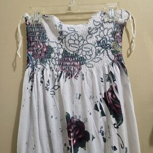 Gently used, vibrant strapless dress with a colorful pattern. Perfect for any occasion. Size Medium.