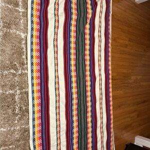 Peruvian textiles blanket or table cloth. Gently used. See pictures for details. Measures 50 x 97 inches. Open to offers as wasn’t sure how to price. Only comparable item on eBay with same manufacturer selling for $98