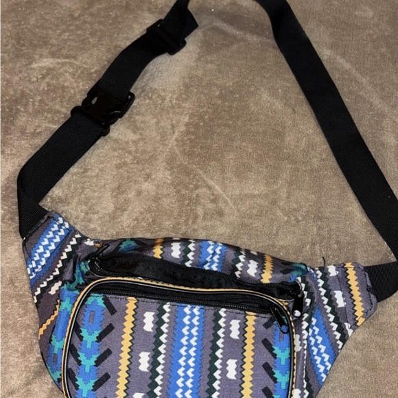 Vibrant fanny pack with a colorful pattern. Features a secure zip pocket and adjustable strap.