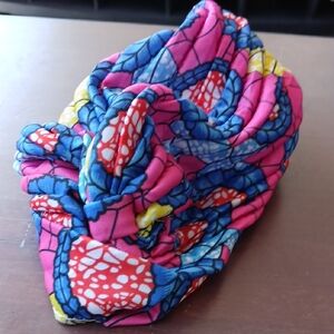 Vibrant headband with a mix of pink, blue, red, and yellow patterns. Perfect for adding a pop of color to any outfit.
