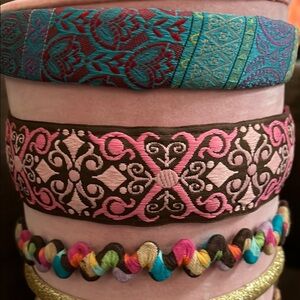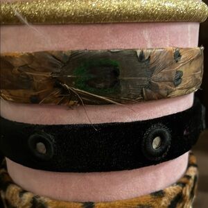 Set of vibrant headbands with various patterns. Includes pink, blue, and multicolor designs.