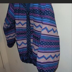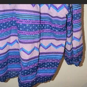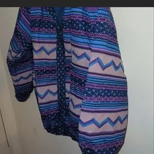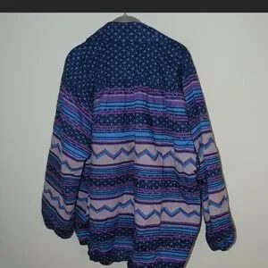 Vibrant jacket with a mix of blue, purple, and pink patterns. Perfect for adding a pop of color to your outfit. one size ~L/XL