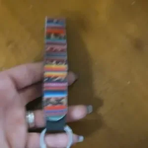 Vibrant keychain with a multicolor pattern. Perfect for adding a pop of color to your keys.