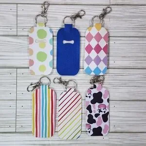choose 1 of these six colorful patterned keychains. Includes polka dots, stripes, and argyle designs. Perfect for adding a pop of color to your keys.