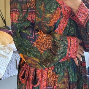 Tropical pink and green Farm Rio Wrap mini dress. Soft silk material, I bought on Poshmark but never wore because it’s a large. Had a button closure on the inside to keep the dress together. Spacious in the chest, I’m typically a small/medium. Features a beaded tie belt. It’s like new, no blemishes or tears.