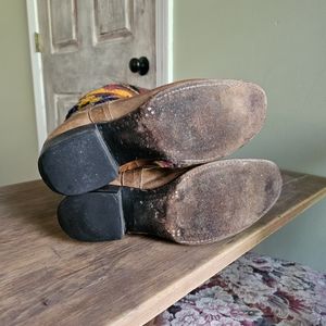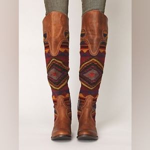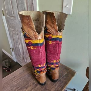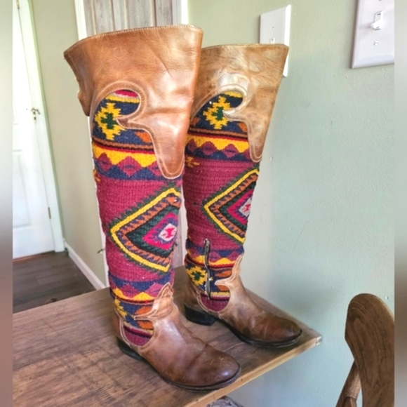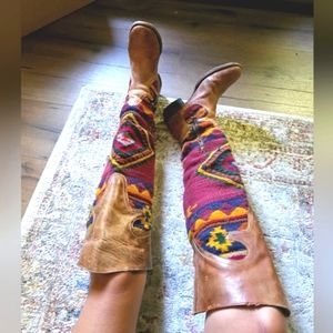 Step out in style with these vibrant knee-high boots. Featuring a unique multicolor pattern, these boots are perfect for adding a pop of color to any outfit.