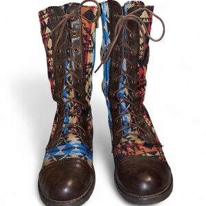 Groove Brown and multi-coloured Aztec print lace-up boots with zipper #boho #western