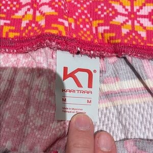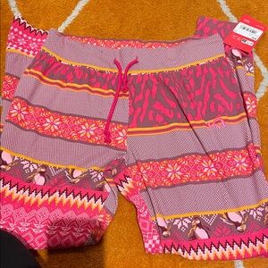 Vibrant leggings with pink and orange patterns. Stylish and comfortable for any occasion.