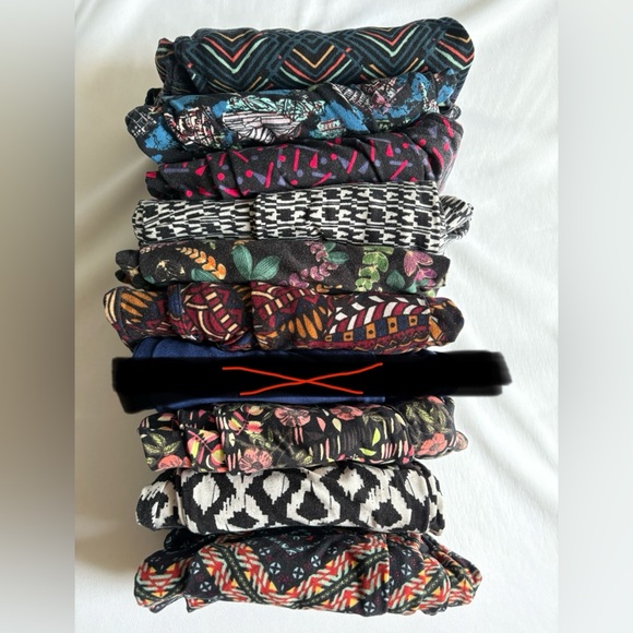 Set of colorful patterned leggings. Includes various designs and vibrant colors. Non-smoking home. Contact to purchase any number of the ten available.
