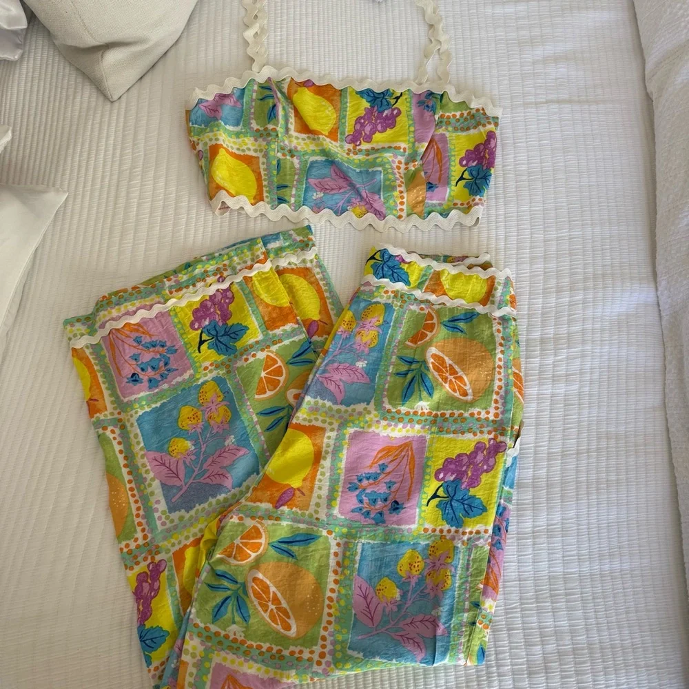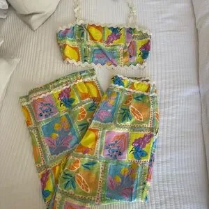 Vibrant and stylish matching set featuring a colorful pattern. Perfect for making a statement.
