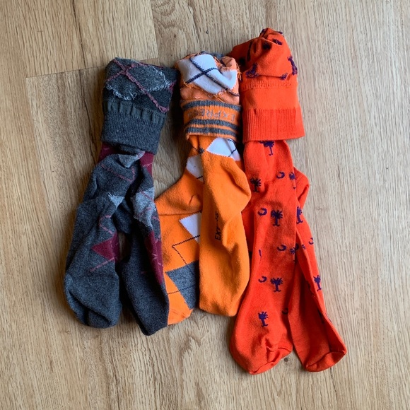Add a splash of color to your wardrobe with this set of vibrant men's socks. Featuring a mix of orange and gray tones, these socks are perfect for any occasion. Enjoy comfort and style with every step.