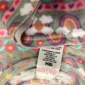Super soft and Cozy pajama set with a vibrant pattern. Features shades of pink, orange, and gray. Pet and smoke free home.