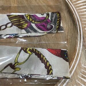 Elegant set of 2 purse scarfs. Features chain and strap design.