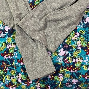 This vibrant top features a colorful pattern with gray raglan sleeves, perfect for adding a pop of color to your wardrobe. Ideal for casual outings.