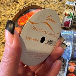 Set of colorful patterned ribbons featuring various designs. Perfect for crafts and decorations.