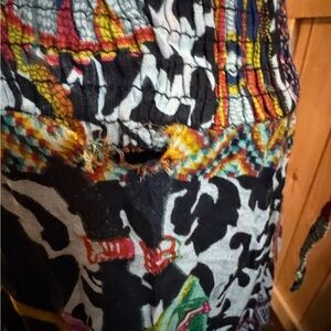 Embrace vibrant style with this colorful patterned romper. Perfect for any occasion, this romper features a stunning mix of colors that will make you stand out. Beautiful beading on the chest and wide legs. Small tear on seem and very small hole the size of a dime on the hip.