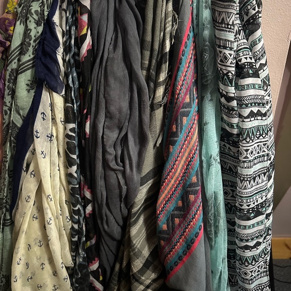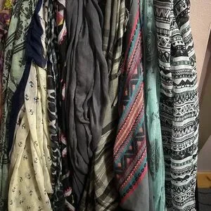 A diverse set of scarves with unique patterns. Perfect for any wardrobe.