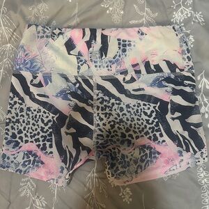 Vibrant shorts with a mix of pink, blue, and black patterns. Perfect for a bold look.