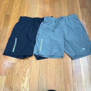 Set of three colorful shorts with fun patterns. Includes designs with dinosaurs, gradient blue, and sharks. Also two pairs of boys athletic style shorts.