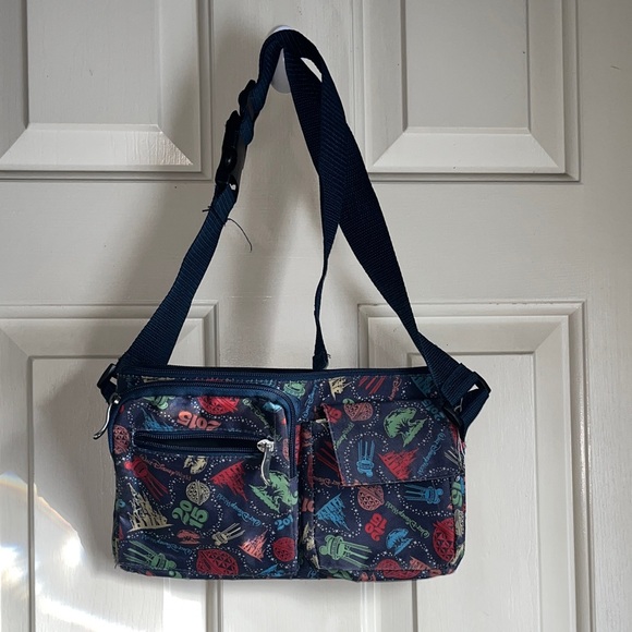 Stylish and vibrant shoulder bag with a colorful pattern. Perfect for adding a pop of color to any outfit. Fanny pack 12” by 18”