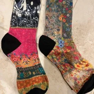 Vibrant and stylish women's socks featuring a mix of colorful patterns. Perfect for adding a pop of color to any outfit.