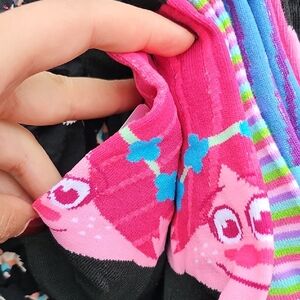 Vibrant set of colorful patterned socks. Includes stripes, hearts, and floral designs. Perfect for adding a pop of color to any outfit.