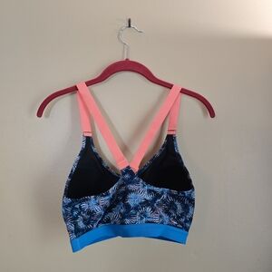 Lightly used low impact sports bra with adjustable straps. From smoke-free and pet-free home. Peach and blue colors, size 32DD.