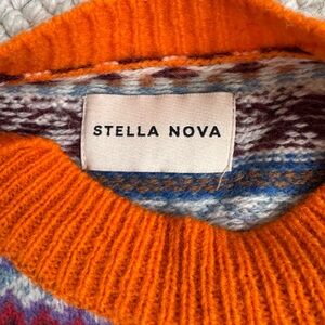 Stay cozy and stylish with this vibrant patterned sweater. Perfect for adding a pop of color to your wardrobe.