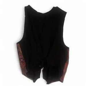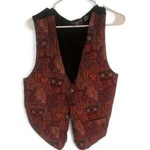 Men’s embroidered geometric suit vest. Clasp detail in the back for adjustment, button up in the front.