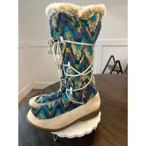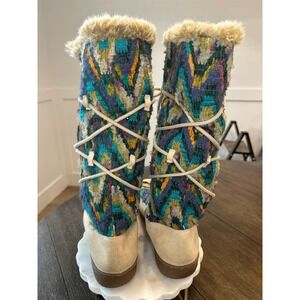 Stay warm and stylish with these colorful patterned winter boots. Perfect for cold weather, these boots offer both comfort and flair.