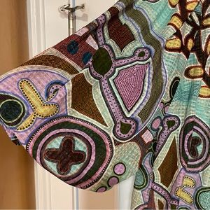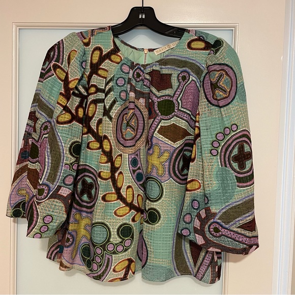 Vibrant women's top featuring a unique multicolor pattern. Perfect for adding a splash of color to your wardrobe.